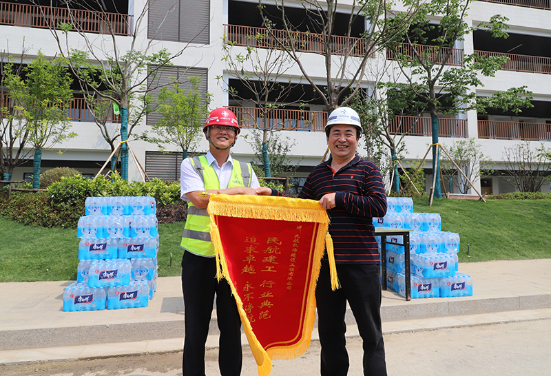近日,華東師范大學(xué)鹽城實驗中學(xué)校長到公司地五總經(jīng)理部、第七總經(jīng)理部承建的華東師范大學(xué)鹽城實驗中學(xué)項目進(jìn)行慰問,并贈送印有“民航建工 行業(yè)典范 追求卓越永不停航”字樣的鮮紅錦旗,對工程的高效推進(jìn)表示滿意,并為項目一線建設(shè)者送來防暑降溫飲品。