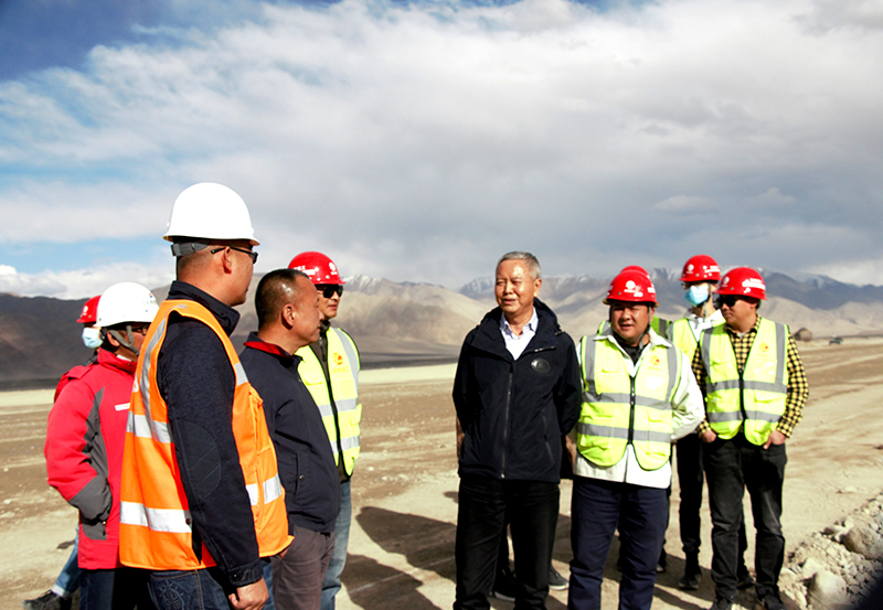 6月19日,新疆機場集團公司副總經(jīng)理姚新民一行到第九總經(jīng)理部承建的新疆塔什庫爾干機場工程場道一標(biāo)段檢查指導(dǎo)工作。
