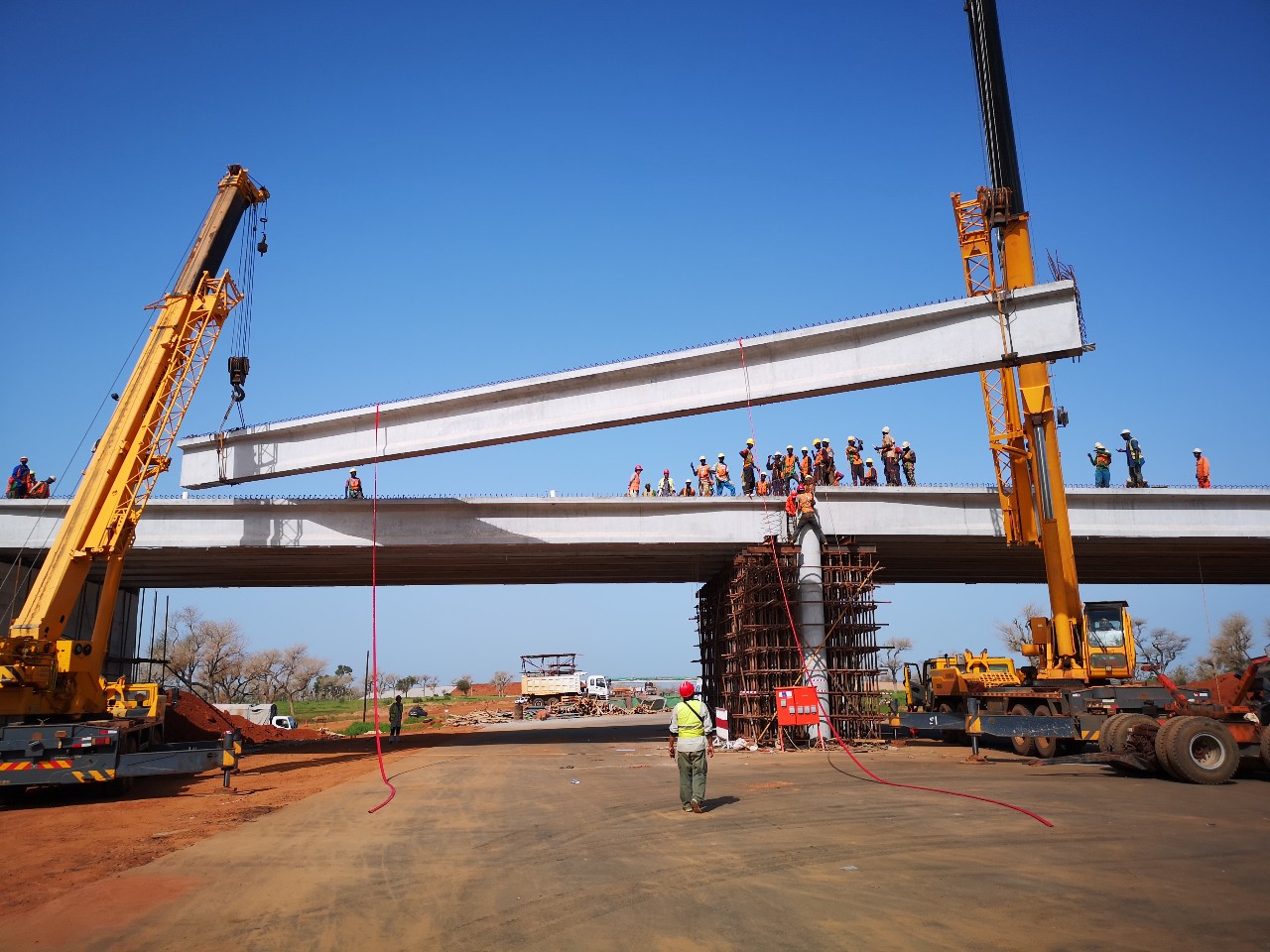 該工程全線橋梁共31座,共計(jì)架設(shè)416片T梁,全部由塞內(nèi)加爾項(xiàng)目部架設(shè)施工。自2017年9月開始,歷經(jīng)13個(gè)月,項(xiàng)目安全圓滿地完成了全線T梁架設(shè)任務(wù)。捷斯-圖巴高速公路是塞內(nèi)加爾最重要的基礎(chǔ)設(shè)施工程之一,項(xiàng)目建成后將形成塞內(nèi)加爾首都達(dá)喀爾通往其北部、東北部地區(qū)以及毛里塔尼亞的快速通道,帶動(dòng)當(dāng)?shù)丶爸苓叺貐^(qū)經(jīng)濟(jì)社會(huì)發(fā)展。