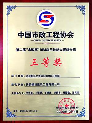 日前,公司申報(bào)的“達(dá)州機(jī)場大道項(xiàng)目BIM綜合應(yīng)用”在中國市政工程協(xié)會2020年第二屆“市政杯”BIM應(yīng)用技能大賽中獲綜合組三等獎。
