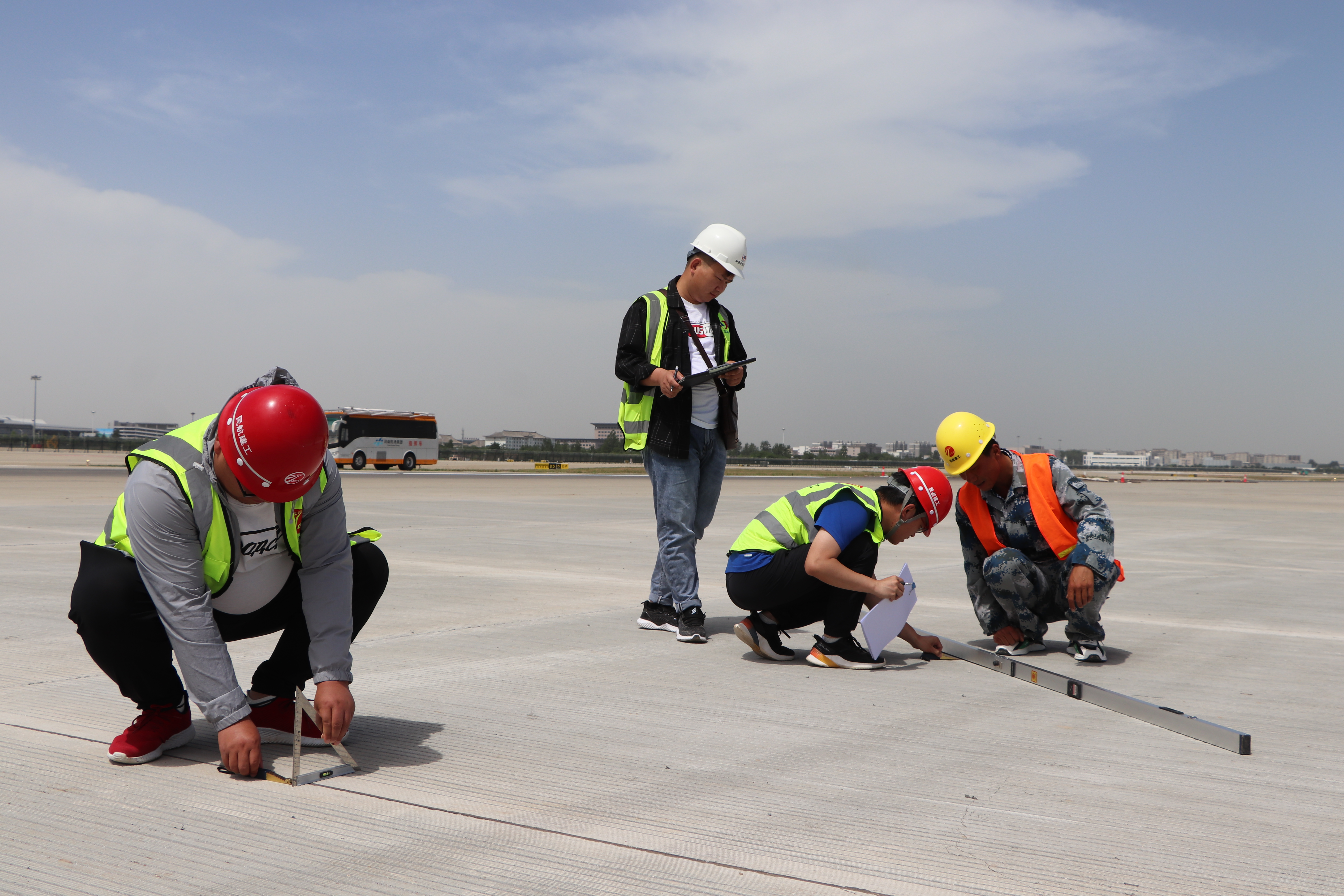 各驗收小組深入不停航施工現(xiàn)場,對跑道道面進行全方位細致檢查,對土面區(qū)高程、壓實度、平整度等方面進行抽檢,在結合內(nèi)業(yè)資料檢查結果以及充分聽取意見的基礎上,經(jīng)研究討論,同意本次竣工驗收通過。