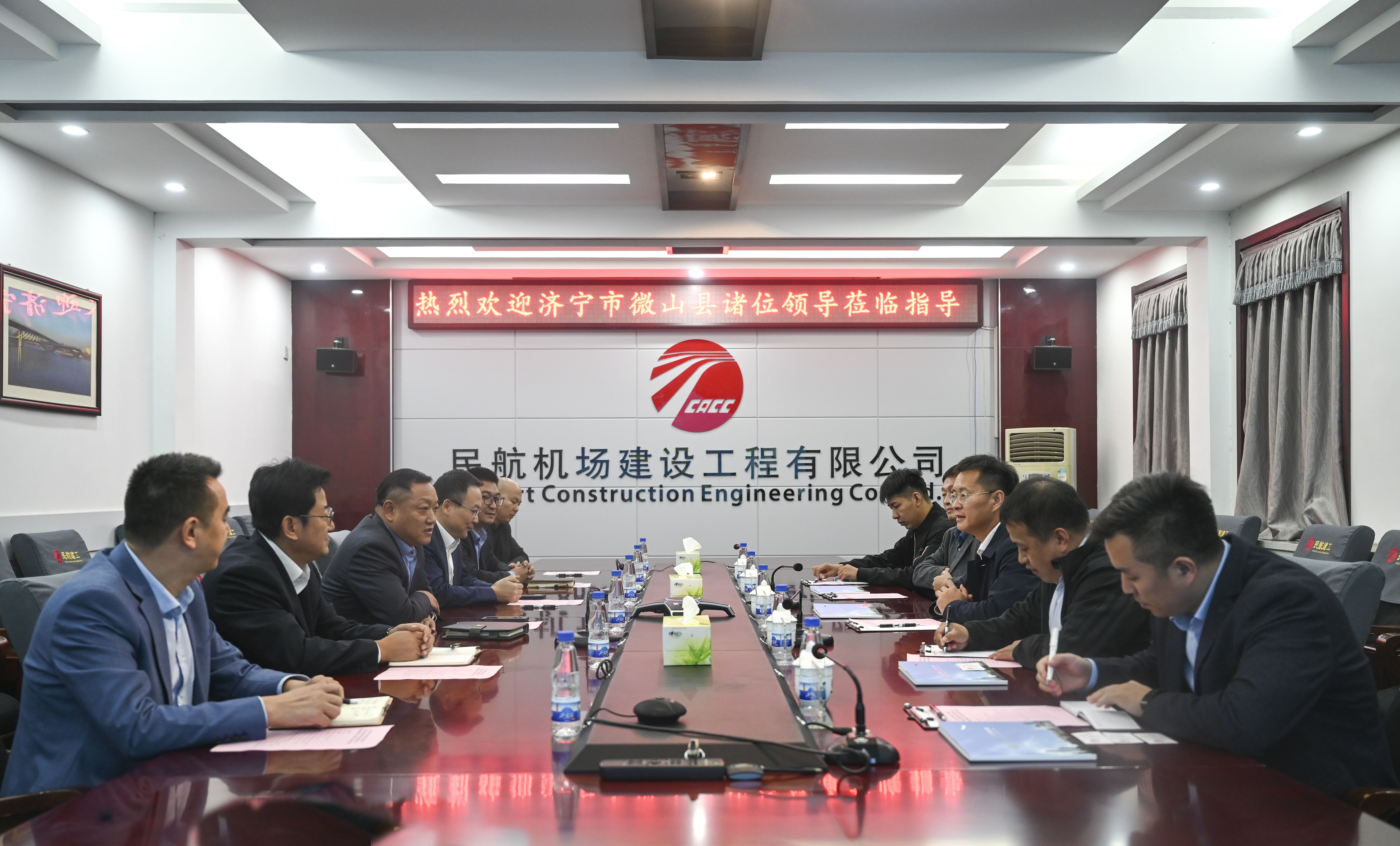 王崇景對公司的發(fā)展情況和業(yè)務能力表示充分肯定,并介紹了微山縣整體情況以及微山創(chuàng)達的發(fā)展情況、業(yè)務范圍。他表示,微山縣十分歡迎積極擔負社會責任、實力雄厚的央企單位,民航建工合作模式、施工能力滿足微山縣發(fā)展需求,在市政工程、基礎設施等方面雙方具備深厚的合作基礎,希望民航建工積極助力微山縣城市建設。