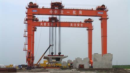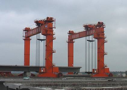 鐵路施工設(shè)備:我公司擁有一套鐵路橋梁施工機(jī)械,包括2臺(tái)MG450輪軌式提梁機(jī)、1臺(tái)TE900輪胎式運(yùn)梁車(chē)及1臺(tái)LG900H輔助導(dǎo)梁式架橋機(jī)。